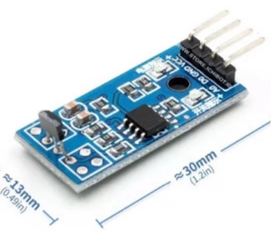 Modul Hall Sensor 3144E Sensor Kecepatan Motor DC juga merupakan sensor yang digunakan untuk mengukur kecepatan motor. Namun prinsip kerjanya berbeda dengan sensor yang menggunakan optocoupler / photoelectric sebagai pengukur kecepatan motor. Sensor ini membaca kecepatan motor dari pergerakan medan magnet yang dihasilkan oleh objek yang diukurnya (contohnya adalah pergerakan medan elektromagnetik pada motor DC). Jadi sensor ini tidak membutuhkan alat bantu dalam melakukan pengukuran kecepatan motor. Berikut di bawah ini adalah gambar modul sensor hall