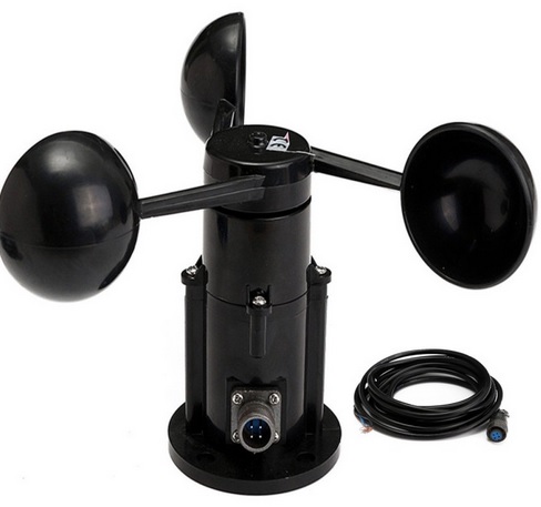 Sensor anemometer yang terdiri dari desain fisik sensor yang berbentuk cup atau terkadang berbentuk baling-baling (kipas) anemometer di dalamnya terdapat sensor optocoupler yang akan membaca kecepatan angin berdasarkan pada kecepatan putaran cup anemometer per satuan waktu. Saat cup anemometer tersebut berputar maka sensor optocoupler yang terdapat pada cup tersebut akan membaca kecepatan putaran angin tersebut yang mana nantinya kecepatan tersebut akan dihitung oleh kontroller dalam persatuan waktu . Hasil keluaran pembacaan oleh kontroller tersebut berupa data kecepatan angin dalam satuan (m/s).