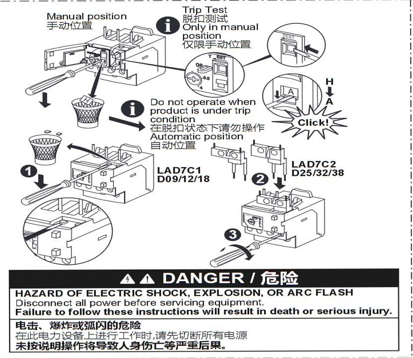 - Tombol Reset akan menghilangkan keadaan trip (trip state) jika sudah tidak terjadi lagi overload.